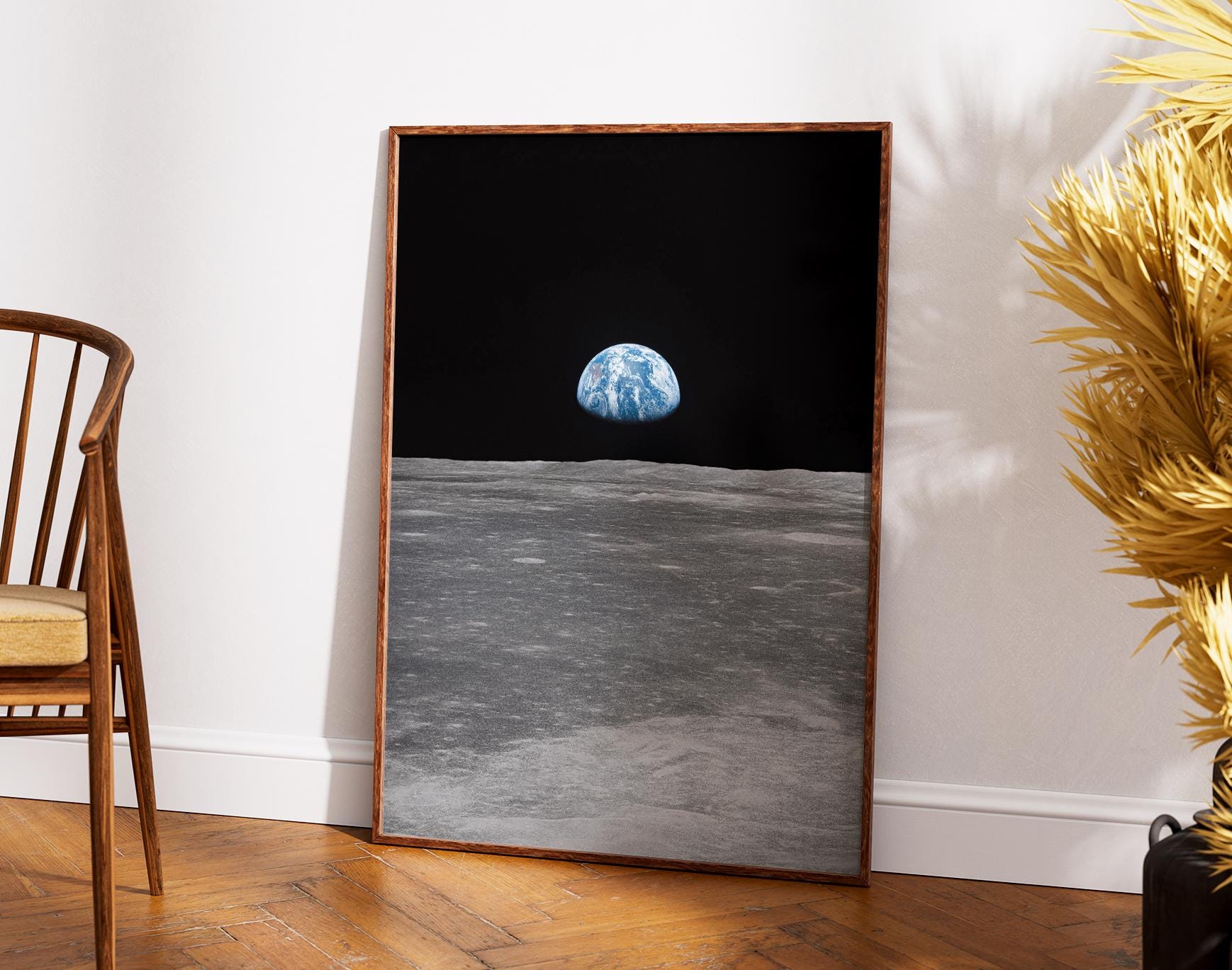 The Apollo 8 Earthrise photo captures the breathtaking moment astronauts saw Earth rising over the moon’s surface, making this Apollo 8 Earthrise photo a must-have for space enthusiasts and art lovers alike. This historic NASA wall art print brings the wonder of space exploration right into your home or office, offering a unique glimpse of our planet from the lunar surface. Printed on museum-quality paper, this high quality poster measures 18 x 24 inches and uses advanced remastering techniques to enhance every detail and color, ensuring you receive a vibrant and sharp space wall print that stands out.