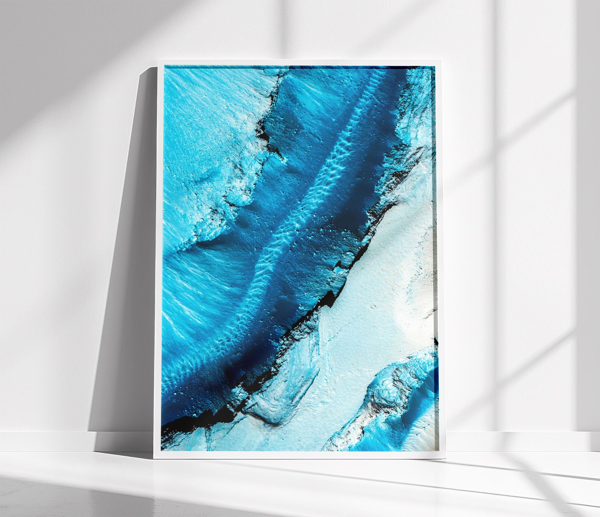 This Mars canyon print captures a stunning landslide on the wall of a Martian crater, photographed by NASA's HiRISE camera aboard the Mars Reconnaissance Orbiter. This Mars canyon print brings vivid false-color enhancements that reveal the intricate textures and flowing debris patterns of the Valles Marineris canyon system, delivering a unique Martian landscape art piece that transforms any space with authentic planetary science visuals. Perfect for space lovers, this NASA Mars poster offers a captivating glimpse into Mars’ dramatic terrain.