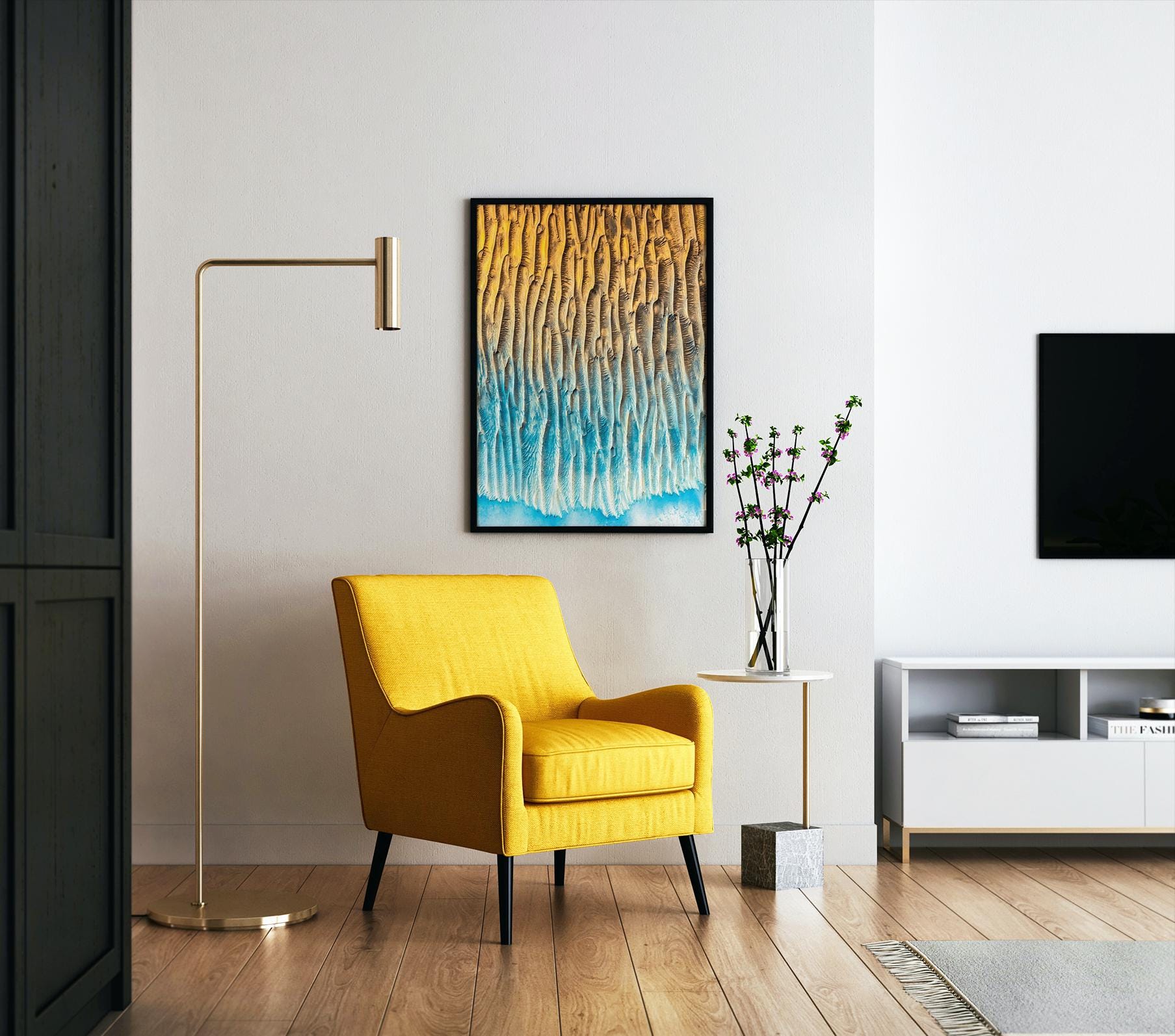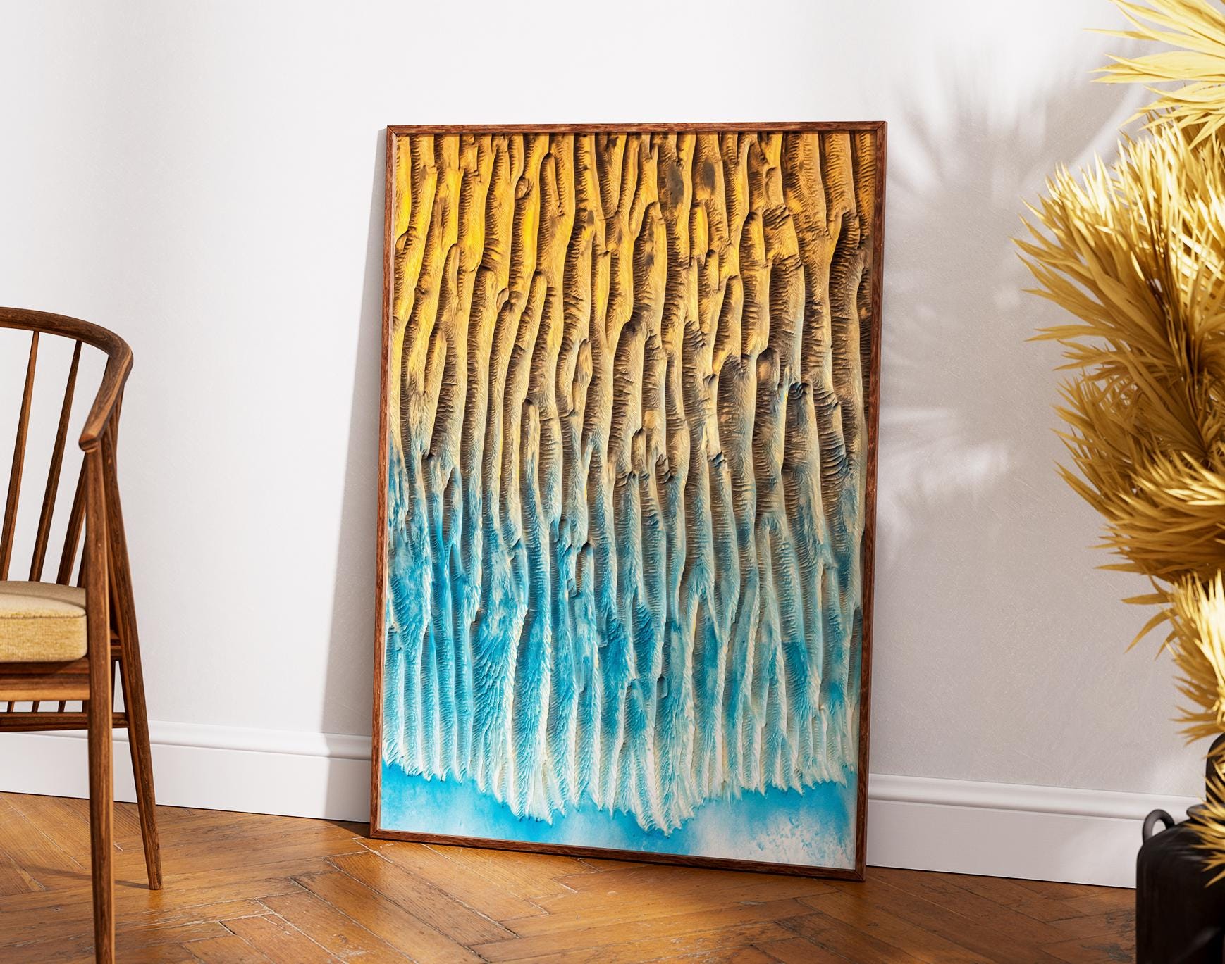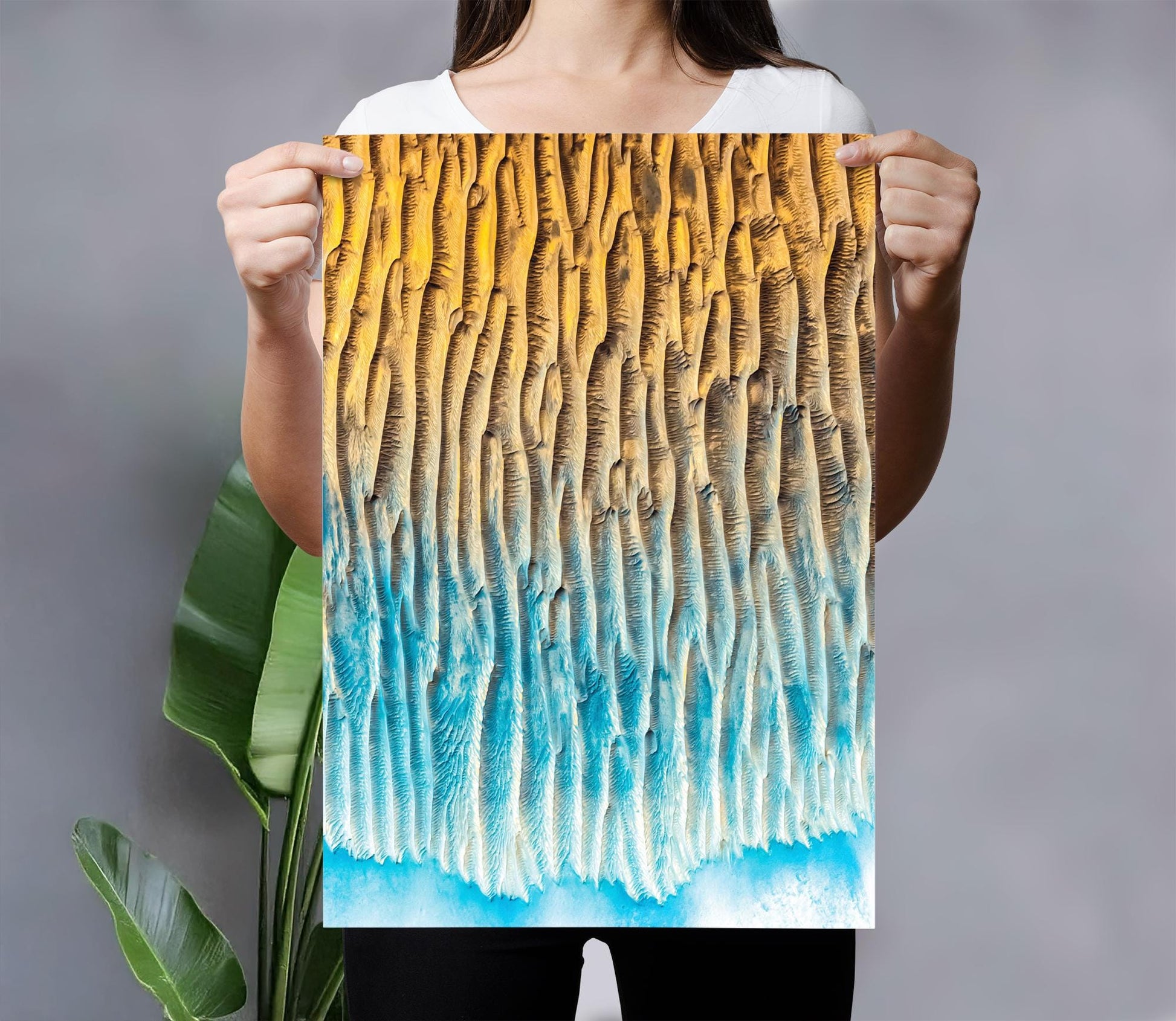 This Mars landscape print features a stunning NASA space photo capturing intricate dune patterns inside an impact crater in Isidis Planitia, a vast plain on Mars. Taken by NASA’s Mars Reconnaissance Orbiter (MRO), this Martian dune photo reveals wind-sculpted ridges shaped by the planet’s thin atmosphere effect and shifting sands over time, delivering an authentic glimpse of the planet surface decor that transforms any room with modern space decor appeal.