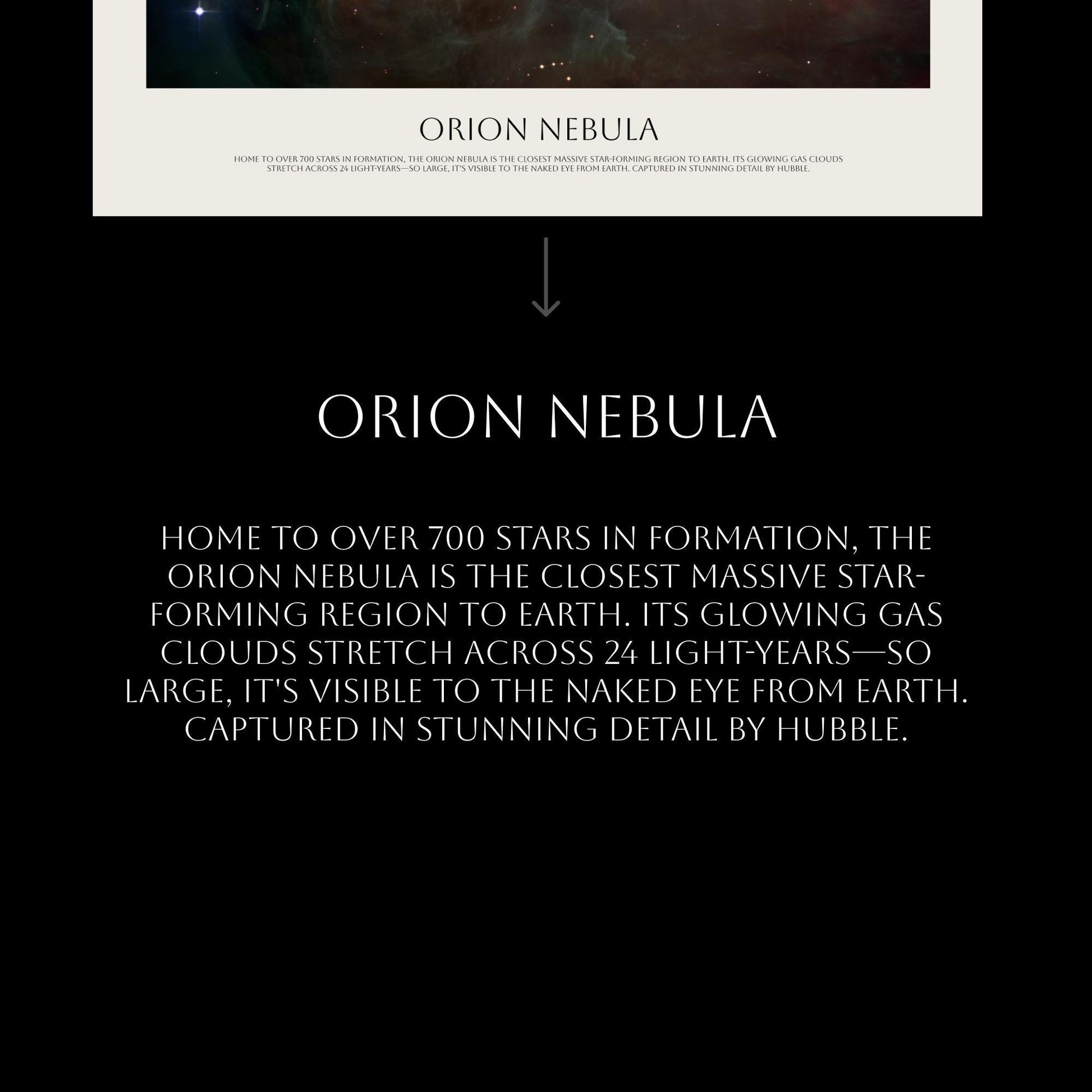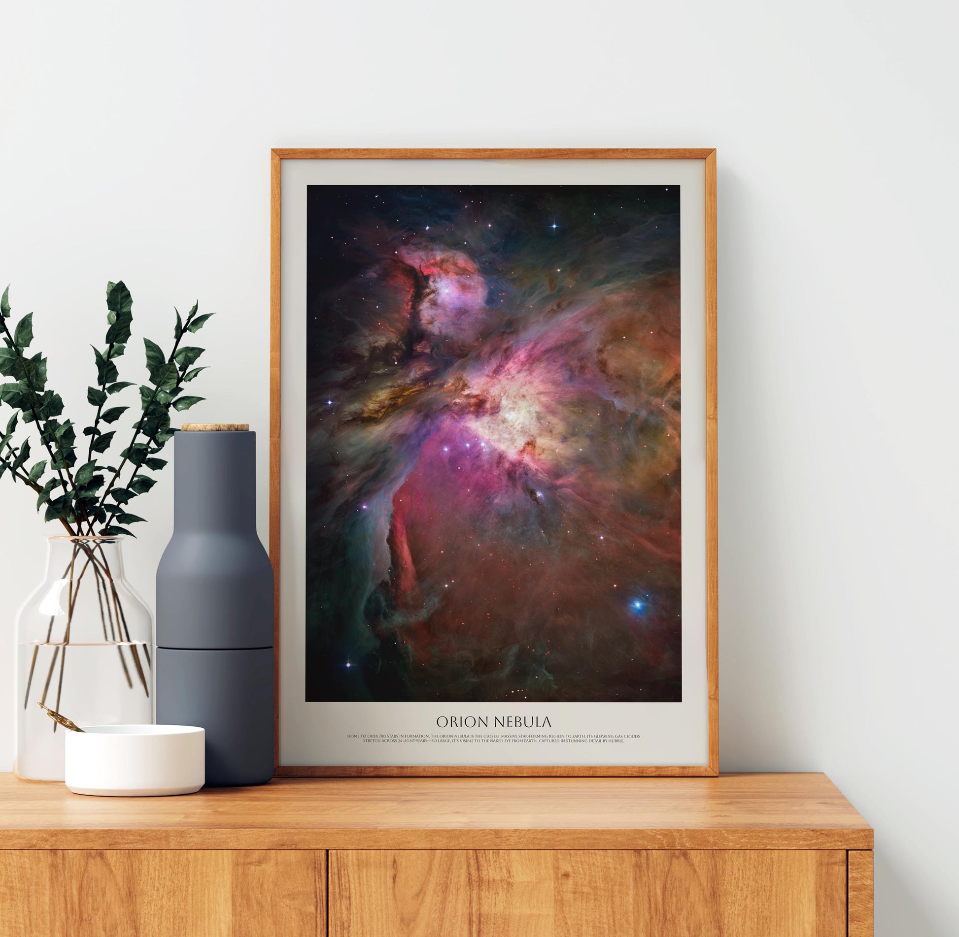 Bring the universe closer with this exquisite nebula wall decor that offers a timeless tribute to space exploration. Whether as a gift for an astronomy lover or a stylish addition to your own collection of space wall art, this Orion Nebula print combines scientific wonder with artistic elegance.